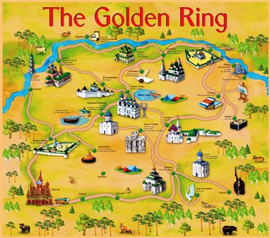 ولادیمیر، که مرکز استانی به همین نام است، در قرون وسطی پایتخت شمال شرقی روسیه بود. این شهر که چندین بنای سنگ سفید از قرون وسطی و تعدادی بنا متعلق به قرون 16 تا 20 میلادی را حفظ کرده، بیشترین بازدید را در مسیر حلقه طلایی به خود اختصاص میدهد. ولادیمیر، 187 کیلومتر از مسکو فاصله دارد و مشرف به رودخانه کِلیازما است. قدمت آن به سال 1108 پس از میلاد بازمیگردد. ولادیمیر دوم مانولاخ، شاهزاده بزرگ روس کییف، آن را تأسیس کرد. با وجودی که برخی مورخان تأسیس آن را به قرن دهم نسبت میدهند، قدیمیترین بناهای موجود، به اواسط قرن دوازده تعلق دارند. کلیسای جامع و دروازه طلایی که در میراث جهانی یونسکو به ثبت رسیدهاند نیز، به همین دوره تاریخی تعلق دارند. ولادیمیر در سال 1238 و زمان حمله «باتوخان مغول» و برای الحاق به خاک اردوی آبی (سرزمینهای تحت فرماندهی باتوخان) ویران شد و هرگز به آبادانی پیش از آن بازنگشت. در قرن پانزدهم میلادی، پایتخت روسیه به مسکو انتقال یافت. به همین مناسبت، کلیسای جامع کاخ کرملین، با الهام از کلیسای جامع ولادیمیر ساخته شد و تابلوی نقاشی معروف «بانوی ولادیمیر» ـ که تصویر صورت مریم مقدس و عیسی مسیح (ع) و اثر دوره بیزانس است ـ بعد از اخراج یوری دولگوروکی (فرزند ولادیمیر دوم مانوماخ) توسط «آندره بوگالووسکی» از کییف به ولادیمیر برده شده بود، به مسکو انتقال یافت. این اثر مهم مذهب ارتدوکس ـ که به گفته «دیوید تالبوت رایس» از برجستهترین نقاشیهای مذهبی جهان به شمار میرود ـ در حال حاضر در نگارخانه ترتیاکوف مسکو که گنجینه مهمترین آثار هنرهای ظریف روسی است، نگهداری میشود.